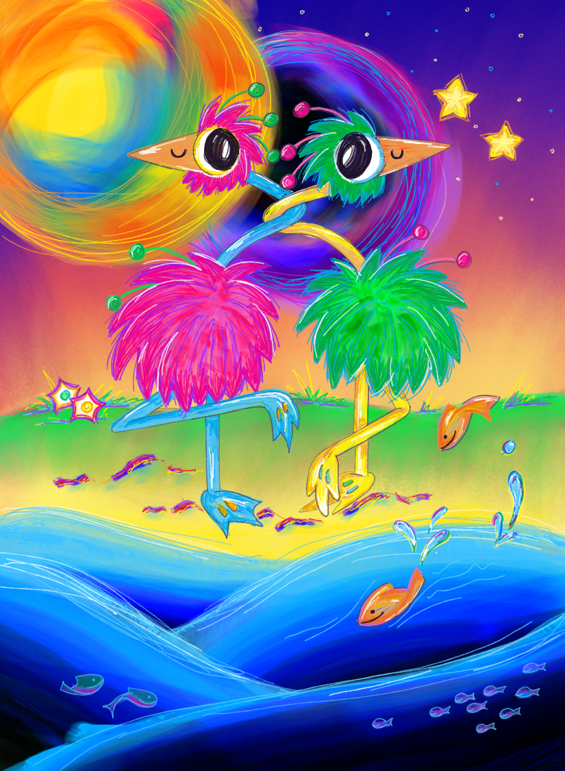 I create illustrations that bring retro pop art to life through bold color, playful geometry, and stories that shimmer with surreal optimism. Explore works where sound and imagination transform into vibrant, visual worlds.