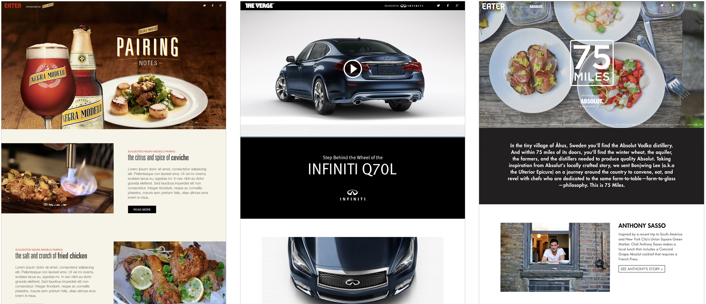 Finalized native ad placements integrated across Vox Media brands (Eater, Polygon, Racked, SB Nation, The Verge, and Vox), establishing a new standard in branded content campaign packages.