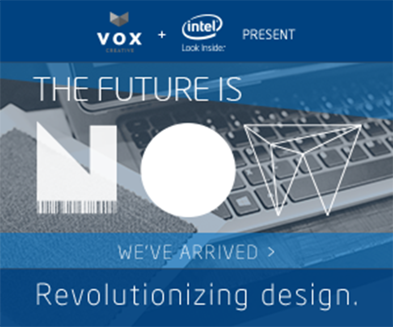 The selected cobranded logo and image treatment—delivering a refined balance between Intel's brand presence and Vox Media's editorial aesthetic, strategically designed for immediate brand recognition and impact.